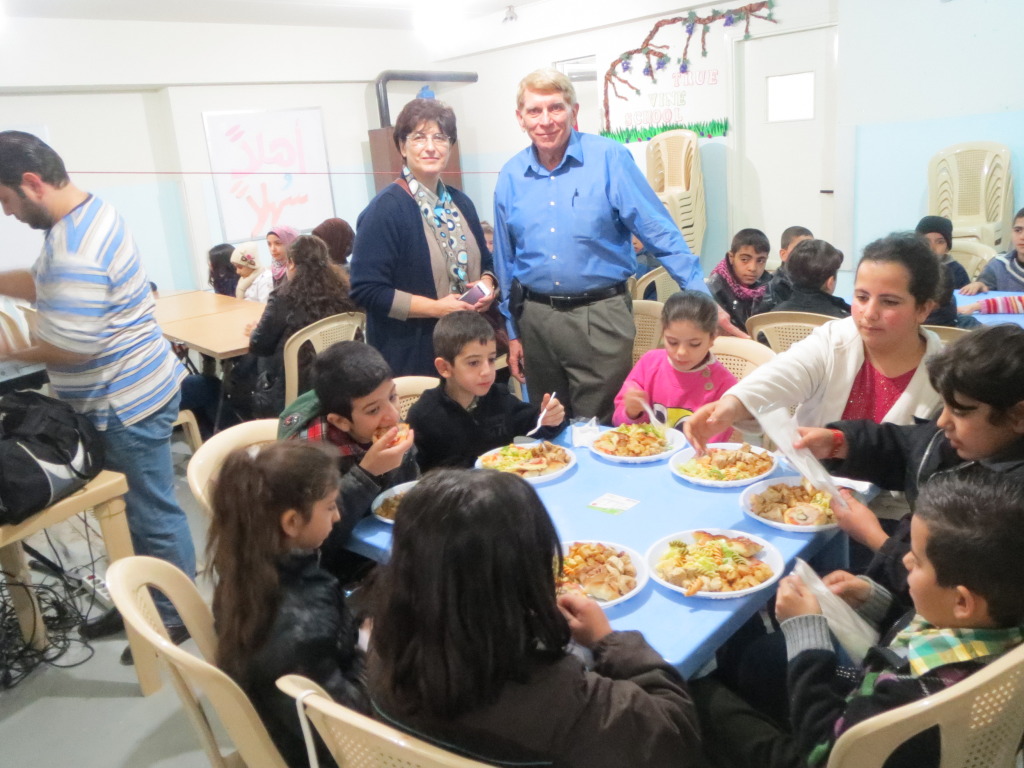 Alia Abboud of the Lebanese Society for Educational and Social Development and William J. Murray in the midst of the children.